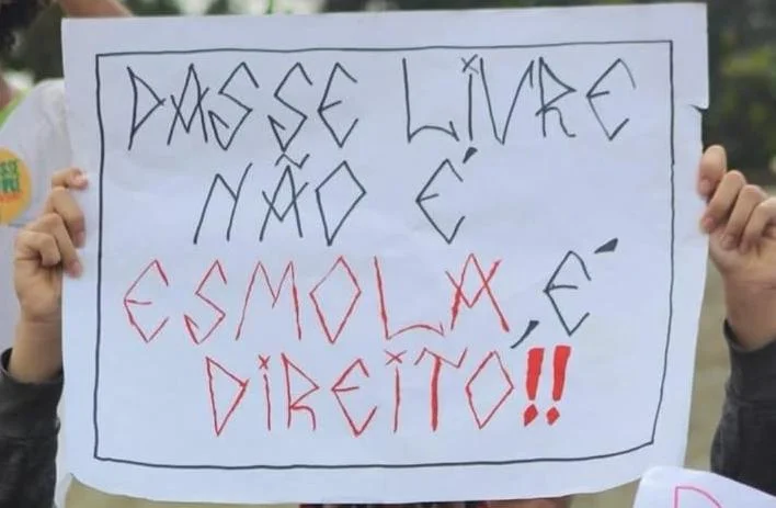 Entre os gritos que mais chamaram atenção, estava a frase: “Passe livre não é esmola, o seu filho vai de carro para escola”, evidenciando a indignação diante da desigualdade enfrentada por quem depende do transporte público para estudar e trabalhar.