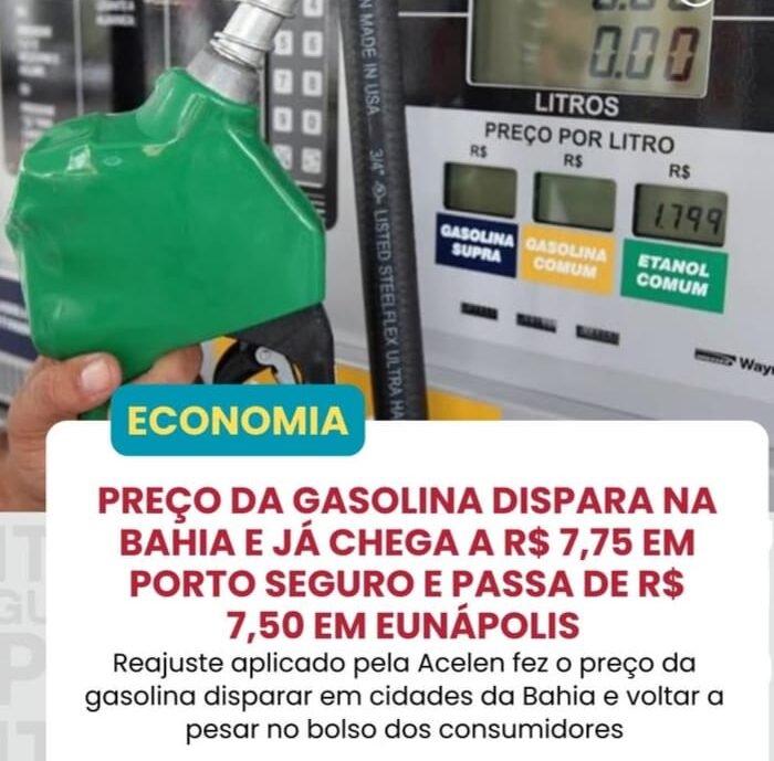 Em outras cidades baianas, os preços também registram alta. Em Porto Seguro, o litro da gasolina comum foi encontrado por até R$ 7,75, enquanto a gasolina aditivada chegou a R$ 9,19 em um posto da cidade.