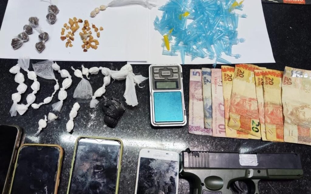 Na noite desta quinta-feira (23), por volta das 21h30, uma equipe do 28º Batalhão da Polícia Militar realizou uma operação que resultou na apreensão de drogas, balanças de precisão e um simulacro de pistola no bairro Moisés Reis, em Eunápolis.